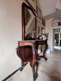 Elegante consolle della fine del 1800, con grande specchio incorniciato.