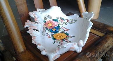 DISEGNATA NELLA PARTE INTERNA E ESTERNA CON FIORI FINEMENTI COLORATI POGGIA SU 4 PIEDINI MOLTO ELEGANTE CON LA LAVORAZIONE FRASTAGLIATA E ONDULATA MISURA CM.20X20 UTILIZZABILE COME PORTA BISCOTTI O PORTA OGGETTI ELEGANTE COME CENTRO TAVOLA