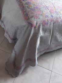 Raffinato copriletto matrimoniale grigio perla in stile Shabby Chic/ classico, reversibile con lato B) tinta unita di un bellissimo grigio. Marchio "Dreams" stampato sul tessuto. Misure: 250 x 270 cm.Tessuto misto nuovo mai utilizzato.