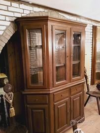 Vendo splendida credenza in legno massello stile rustico, caratterizzata da linee eleganti e lavorazioni raffinate. La parte superiore è composta da tre ante con vetri che valorizzano l’interno, perfette per esporre servizi di piatti, bicchieri o oggetti da collezione. La struttura è arricchita da dettagli intagliati e maniglie decorative in stile classico.