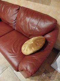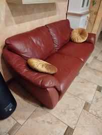 Elegante divano vera pelle, color mogano in ottimo stato.