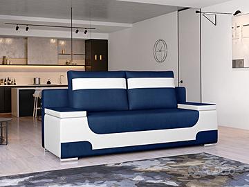 Il divano letto tre posti Palinuro ha la caratteristica di disporre di un pratico e capiente box contenitore sotto la seduta; inoltre, con un semplice movimento, pratico e veloce, si trasforma in un divano letto matrimoniale. Le sua profondità è particolarmente contenuta tale da consentirne l’inserimento in piccole stanze senza togliere spazio a disposizione. Il suo peso è rilevante, come la sua qualità, ed è di ben 95 Kg, di gran lunga superiore alle tante proposte presenti sul mercato.
