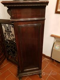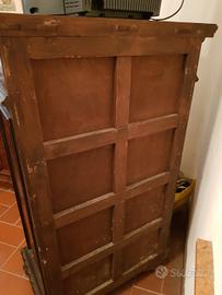 elegante e originale mobile in stile antico dei primi del Novecento struttura solida comodi ripiani all'interno e anta aperta con griglia in ferro battuto. ideale come piccola libreria o elegante mobile da ufficio. altezza 150 larghezza 95 profondità 55