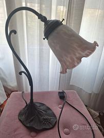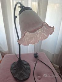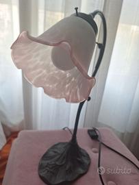 Bella ed elegante lampada da tavolo con struttura in metallo, funzionante, piacevoli riflessi del vetro quando la lampada è accesa. Spedizione possibile.