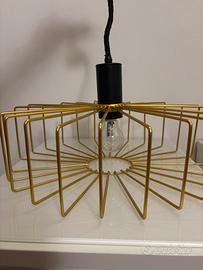 Vendo bellissimo lampadario a sospensione dal design moderno e minimale, perfetto per dare un tocco di stile industriale ed elegante al tuo soggiorno, camera da letto o ufficio. Il lampadario è caratterizzato da una struttura geometrica in metallo color oro, che crea una splendida proiezione di luci ve ombre sulle pareti. Il corpo centrale e il cavo sono in colore nero, creando un contrasto molto sofisticato e contemporaneo. Caratteristiche: • Colore: Oro lucido e Nero opaco. • Materiale: Metallo resistente di alta qualità. • Stile: Industrial / Minimalista / Contemporaneo. • Stato: L'oggetto è in condizioni eccellenti, praticamente come nuovo, senza graffi o segni di usura. • Lampadina: Inclusa nel prezzo (se desideri regalarla, altrimenti scrivi "non inclusa"). Consegna: • Solo ritiro a mano: Per garantire l'integrità del prodotto, preferisco la consegna a mano a Padova / Arcella Non effettuo spedizioni.