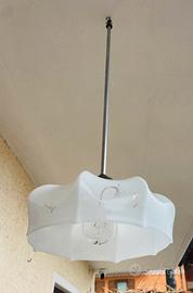 Lampadario vintage in vetro opalino - stile classico Vendo elegante lampadario a sospensione dal design vintage, caratterizzato da una raffinata coppa in vetro opalino bianco con bordo ondulato e delicati dettagli decorativi. - Struttura semplice e funzionale con asta in metallo - Diffusore in vetro in buone condizioni (presenti lievi segni del tempo visibili in foto) - Attacco per lampadina standard - Ideale per cucina, corridoio o ambienti in stile retrò/classico Il lampadario è perfettamente funzionante e dona un tocco caldo e accogliente all'ambiente.
