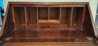 Interni: La ribalta si apre mostrando un vano scrittoio con inserto in pelle, dotato di piccoli scomparti e un cassettino centrale.