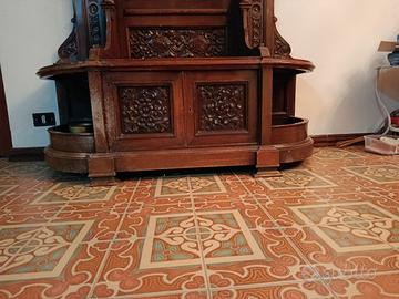 Vendo splendido mobile antico fine '800, intagliato a mano, con specchiera centrale, portaombrelli e ganci in ferro battuto. Perfetto per ingressi o ambienti classici. Buono stato, ideale per collezionisti o amanti dell’arredamento vintage.