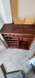 Vendo elegante mobile porta bottiglie in legno massello, completamente restaurato a mano e pronto da utilizzare. Perfetto per soggiorno, cucina, taverna o angolo bar. Look caldo e vintage ideale per ambienti moderni o rustici. E' dotato anche di sportelli e una mensola che possono essere aggiunti a piacimento.