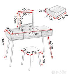 Grazie allo specchio a scomparsa, il design è discreto e versatile: puoi utilizzarlo come toeletta quando lo specchio è aperto, oppure come pratico piano d'appoggio quando è chiuso. Ideale per ottimizzare gli spazi!