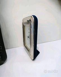Elegante orologio da tavolo con cornice in argento, dal design classico.
