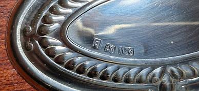 Penna a sfera con elegante portapenna da scrivania, in radica e argento, ideale da collezione o come regalo di laurea o per Natale.
