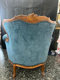 Splendida poltrona classica modello Bergère in stile Luigi XV, caratterizzata da linee sinuose e un design senza tempo che dona un tocco di nobiltà a qualsiasi ambiente (salotto, camera da letto o studio).