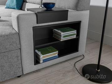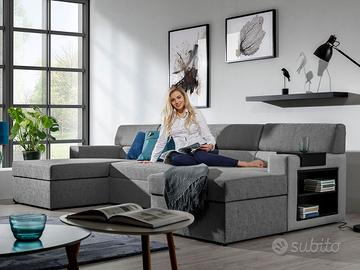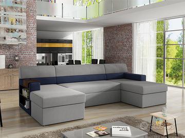 Divano-letto angolare a U, con due penisole provviste di box contenitore, in 9 originali colori moda, identico prezzo