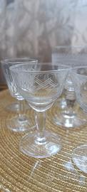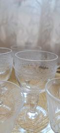 Vendo raffinato set di bicchieri vintage da collezione, risalenti con ogni probabilità agli anni '50/'60. I bicchieri sono realizzati in vetro finemente inciso a mano con motivi floreali e geometrici, perfetti per amanti del design retrò, collezionisti o per impreziosire la tavola in occasioni speciali.