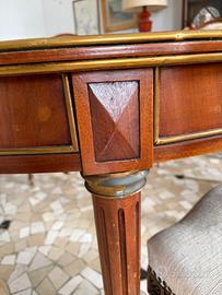 Vendo splendido set completo sala da pranzo stile Luigi XVI (neoclassico/francese), in legno massello di mogano con finiture dorate e intagli eleganti.