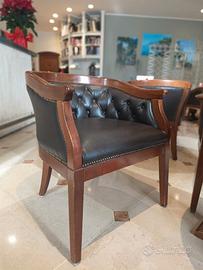 Per rinnovo locali vendiamo 5 set composti da tavolo in legno e marmo e 3 sedie in legno con seduta rivestita in vera pelle. Possibilità di acquisto anche di un solo set tavolo + sedia