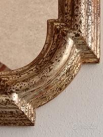 Elegantissima specchiera argentata di fattura veneta, realizzata in legno scolpito e foglia d’argento, corredata del proprio specchio.