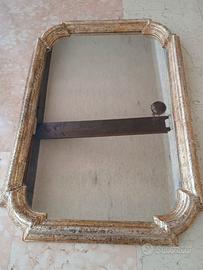 Elegantissima specchiera argentata di fattura veneta, realizzata in legno scolpito e foglia d’argento, corredata del proprio specchio. Ideale sia in verticale che in orizzontale.