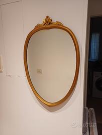 Elegante specchio ovale 1950 largo 55cm e alto 85, cornice legno dorato, ottimo stato con qualche piccolo segno del tempo. Le foto sono parte integrante della descrizione. Solo ritiro.