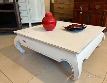 Propongo un tavolino basso cinese modello Opium in legno realizzato in stile shabby chic.