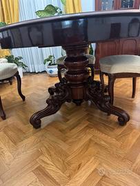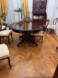 Vendo splendido tavolo rotondo d'epoca risalente all'Ottocento, in autentico stile Luigi Filippo. Un pezzo di antiquariato di grande fascino e solidità, perfetto per arricchire una sala da pranzo classica o per creare un elegante contrasto in un ambiente moderno.