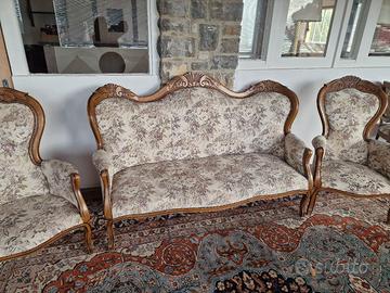 Vendo elegante tris composto da due poltrone e un divano, di grande qualità artigianale.