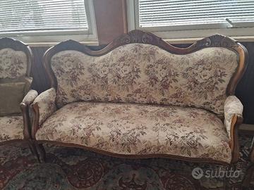 Vendo elegante tris composto da due poltrone e un divano, di grande qualità artigianale. La struttura è solida e in ottime condizioni, senza cedimenti, mentre il tessuto è sbiadito e necessita di rifacimento, ideale quindi per chi desidera restaurare e personalizzare l’imbottito secondo il proprio gusto. Perfetto per amanti del design, restauratori o per chi cerca un pezzo da valorizzare. 📌 Condizioni: Struttura: ottima Tessuto: da rifare Vendita in blocco 📍 Visibile previo accordo 💰 Prezzo: da concordare / trattabile Per informazioni o foto aggiuntive, contattami in privato.