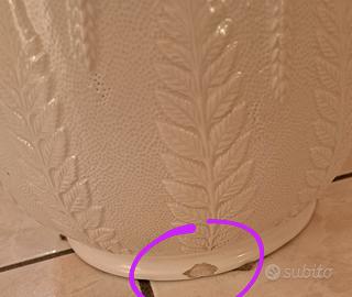VENDO ELEGANTE VASO DA FIORI. COLORE BIANCO. IN PORCELLANA BIANCA DI ALTA QUALITA’. MADE IN ITALY. MARCA: BLOOMINGDALE’S. MISURE COME DA FOTO. CON DECORAZIONI IN RILIEVO SULLA SUPERFICIE ESTERNA VIENE UTILIZZATO PRINCIPALMENTE COME CONTENITORE DECORATIVO PER VASI DA FIORI INTERNI ED ESTERNI. CON PIEDINI PROTETTIVI SUL FONDO. HA SOLO UN DIFETTO COME DA FOTO, PER IL RESTO E’ IN OTTIME CONDIZIONI
