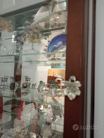 La vetrina pensile è costituita da parte della struttura in legno laccato, piani in cristallo e fondo a specchio. L'oggettistica interna non è compresa, la foto è indicativa