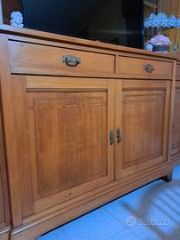 Splendide credenze originali anni 60 in legno di ciliegio impreziosite da raffinate decorazioni in oro e vetrine laterali con cristalli trasparenti.