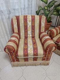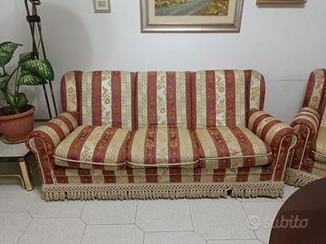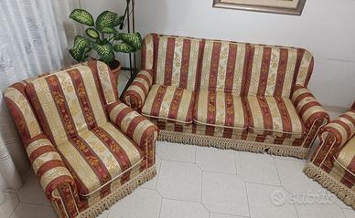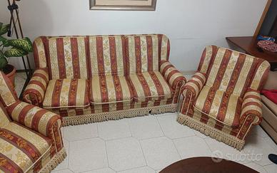 Vendo un divano e due poltrone in stile barocco, dal design classico ed elegante. Rivestiti con tessuto a strisce rosse e bianche, questi pezzi donano un tocco raffinato a qualsiasi ambiente, dal salotto alla sala d'attesa.