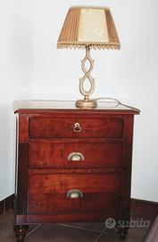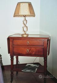 vendo coppia di lumi identici ad 1 luce con struttura in ferro battuto dorata e paralumi rivestiti in tessuto in seta e profilati da pendenti color ambra. Eventualmente abbinabili a lume a 2 luci della stessa serie e fattura presente tra gli articoli della mia pagina.
