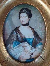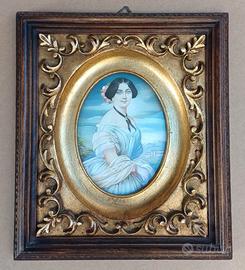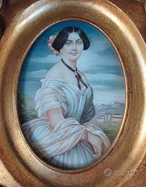 Splendida coppia di quadretti d’epoca raffiguranti ritratti femminili in stile ottocentesco.