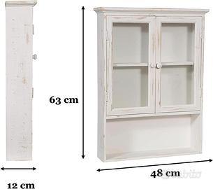 Arricchisci il tuo bagno o la tua cucina con il nostro Mobiletto Sospeso Biscottini, perfetto per chi cerca una soluzione salvaspazio senza rinunciare allo stile. Realizzato con legno massello di tiglio e rifiniture in vetro, questo armadietto 63x12x48 cm combina robustezza e design per una resistenza che dura nel tempo.
