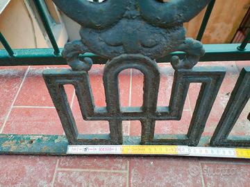 7 elementi in ghisa altezza cm 80 larghezza cm 18, la base è cm 23 al momento formano una ringhiera ma all' occorrenza posso venderli separatamente. costo cadauno euro 35 tutti insieme 200