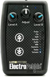 ElectroPebble(R) can pack a real punch with Dual channels, Soft Touch Stepless Level Controls, 9 Adjustable Programs:- Pulse, Flo, Split, Bounce, Audio, Milk, Squeeze, Tease and Torment, Built in Microphone and our brand new LifeLine(TM) display.