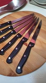 Set / Kit 6 Coltelli da tavola / carne / bistecca / steak con lama a punta, seghettata, in acciaio inox inossidabile full tang temprata, rivettata su manico in polipropilene nero con impugnatura antiscivolo dal design ergonomico, lavabili in lavastoviglie, professionals Eliss Kitchenware.