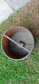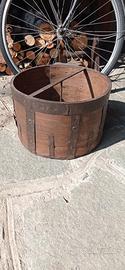 Misura per grano, circolare, in legno con rinforzi in metallo. Italia epoca fine 800. Stile rustico antico. Dimensioni diametro cm. 38, altezza cm. 24