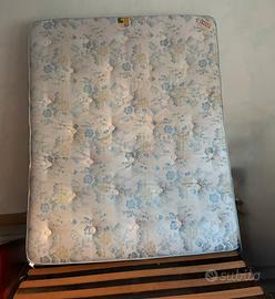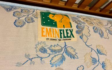 Eminflex originale, materasso ergonomico modello MITO matrimoniale (160x190x5h), fresco cotone per il lato estivo e calda lana vergine per il lato invernale. Ottimo stato. Letto matrimoniale in legno noce, rete con doghe ortopediche in legno. (205x172). Ottimo stato. Vendo anche separatamente.