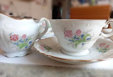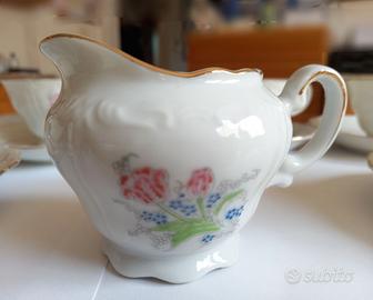 PORCELLANA GIAPPONESE E.M.S. con BORDO ORO, VINTAGE Servizio composto da: - 6 tazze da the (diametro 9,5 cm, altezza 5,5 cm) - 6 piattini - 1 lattiera Si trova a Padova, ritiro e trasporto a carico dell’acquirente.