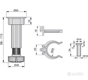 Set 4 piedini emuca altezza 10 cm come da titolo; dimensioni effettive nella seconda foto.