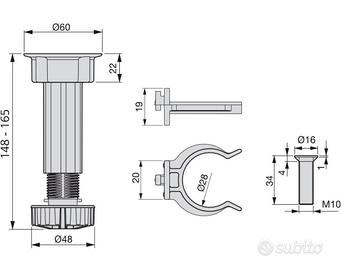 Set 4 piedini emuca altezza 150 mm modello come da titolo; dimensioni effettive nella seconda foto.