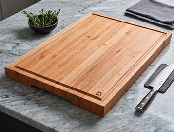 * Design Funzionale: * Canalina raccogli-succhi: Fresata con precisione lungo tutto il perimetro per mantenere il piano di lavoro sempre pulito durante il taglio di carni o verdure succose.