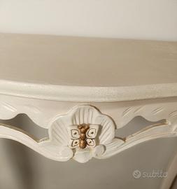 Elegante consolle in legno color avorio, perfetta per arredare ingressi o angoli romantici.