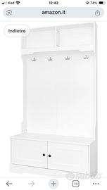 Bianco Armadietto Ingresso, Guardaroba Ingresso con Spazio di Archiviazione nella Parte Inferiore del Sedile con 4 Ganci per Appendere e 2 Scomparti nella Parte Superiore per la Conservazione