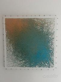 Sul perimetro, le gocce di silicone — tutte diverse, tutte colorate — incorniciano l’opera come una costellazione. Sono punti di luce e materia che riportano equilibrio, un ritmo che chiude e completa il gesto libero del colore.