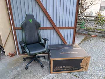 Razer Iskur X - Sedia da Gaming Ergonomica (Pelle Sintetica Multistrato, Cuscini in Schiuma ad Alta Densità, Braccioli 2D, Telaio Rinforzato in Acciaio), Nero