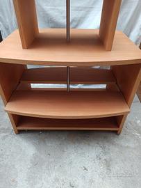 Espositore - scaffale con ruote, usato per oggetti Thun con 5 ripiani totali. Ingombro massimo 107x75 cm h 150 cm. Predisposizione illuminazione con faretti (parzialmente funzionante). Secondo ripiano con guida estraibile.