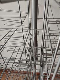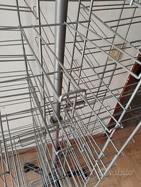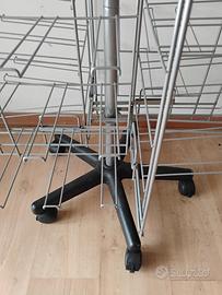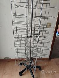 Vendo espositore girevole a 360°, solido e facile da spostare grazie alla base con ruote.